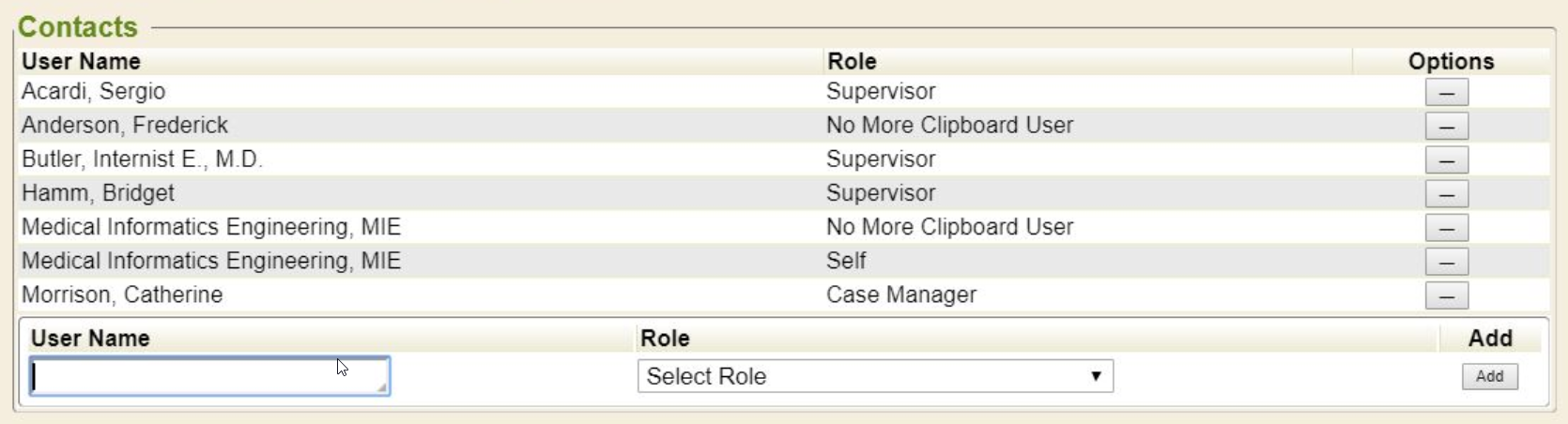The supervisor user-patient relationship is typically automated through an HR interface.