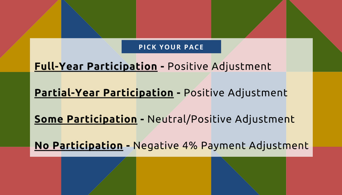 Given the built-in leniency of 2017 reporting requirements and the ability to Pick Your Pace, MIE wants to ensure all options are available to our clients, from the onset. The first step in determining your pace is knowing what type of payment adjustment you want. With that, you determine your participation rate, and leave the rest to MIE.