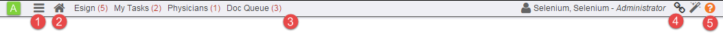 A. Application toolbar: Displays application ( Enterprise Health ) navigation: