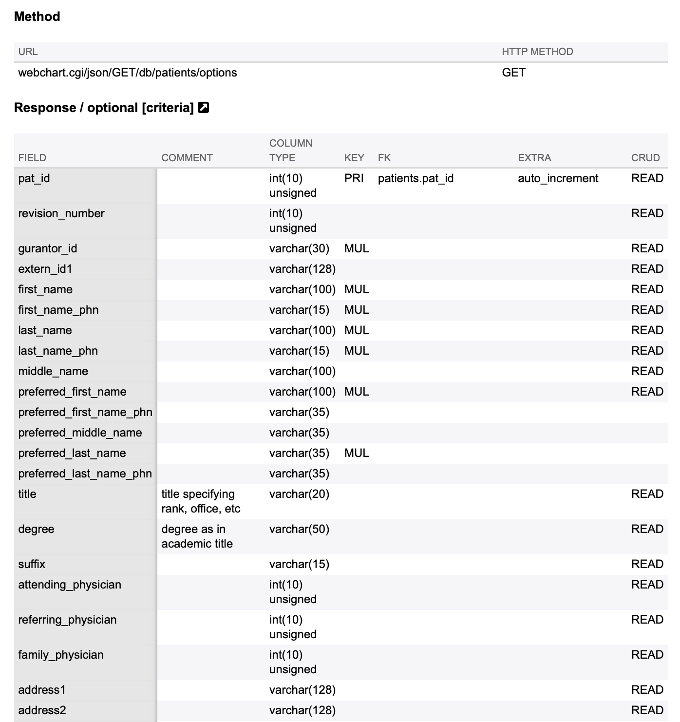 | Race | ?f=layout&module=StructDocAPI&name=Patient%20Race&XML&pat_id=XX |